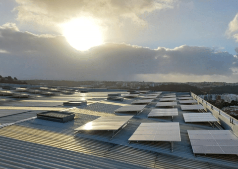 Instalação de Sistema FV para autoconsumo, com uma potência de pico de 87,2 kWp (160 módulos de 545Wp) e potência nominal de 80 kWn, instalado em estrutura gravítica SOLARBLOC, sob a cobertura, com 10º de inclinação.